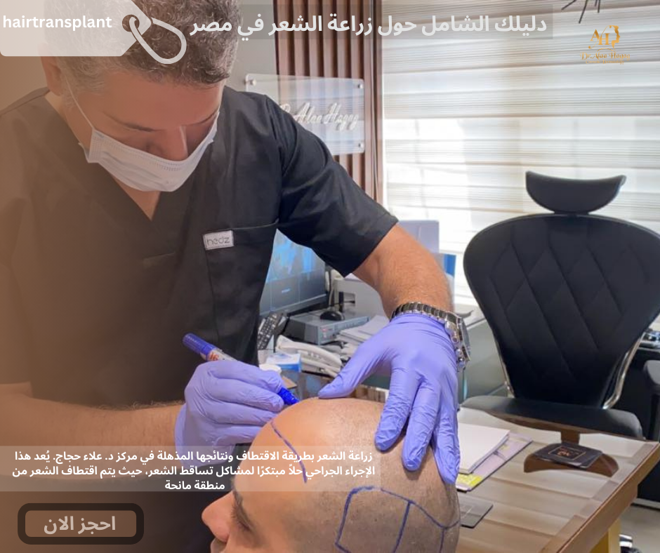 عملية زراعة الشعر هي إجراء جراحي يهدف إلى معرفة اسباب تساقط الشعر بكثرة  و زراعة شعر طبيعي في مناطق فقدان الشعر عند الأشخاص الذين يعانون من تساقط شعر غزير أو فقدان شعر جزئي. تعتمد هذه العملية على انتقاء وزراعة بصيلات الشعر السليمة من مناطق الرأس التي تعاني من نمو شعر جيد، وزراعتها في المناطق التي تحتاج إلى إعادة تشكيل وتكثيف الشعر. يتم القيام بعملية زراعة الشعر في مصر تحت تأثير التخدير الموضعي، ويمكن أن تستغرق العملية عدة ساعات، تعتمد على حجم الزرع ومدى تقدم فقدان الشعر.في مركز د. علاء حجاج، نقدم خدمات زراعة الشعر في مصر بأحدث التقنيات والأدوات الطبية، ونضمن لك النتائج الطبيعية والممتازة. اتصل بنا اليوم واحصل على شعر كثيف وصحي يعزز من جمالك وثقتك بنفسك.